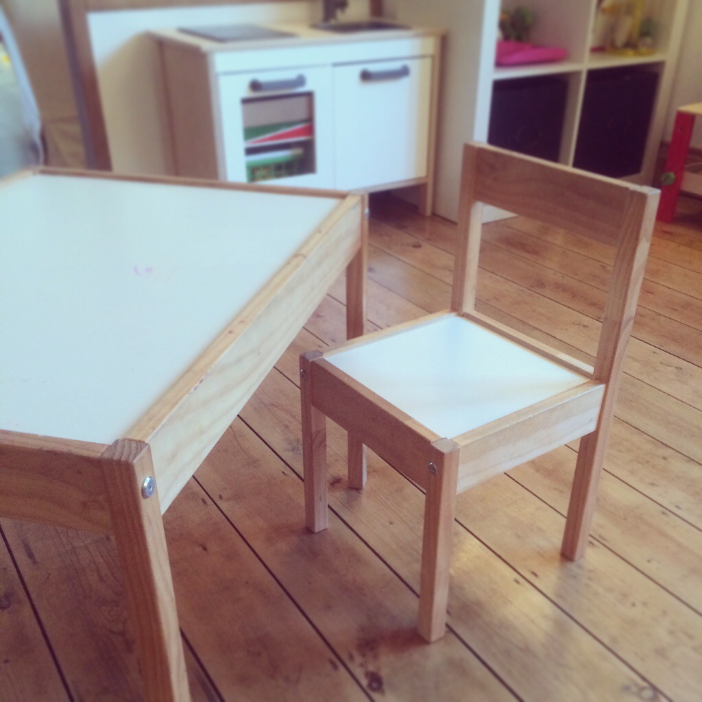 Like many people with preschool-aged children, we are the proud owners of a very useful table and chairs for little people – the ubiquitous Lätt, from everyone’s favourite Swedish flat-packed furniture emporium. After nearly three years of (ab)use from Chief Stick Collector and, latterly, Bird Girl, the lovely Lätt has started to look a little tired and unhappy.