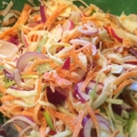Directions Shred all the veg. Mix the mayo and vinegar, stir into the shredded veg, mix in the fennel seeds and season.