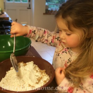 As usual, the recipe below is an amalgam and adaptation of various recipes, based mainly on what we had in the cupboard and what sounded simple enough for a two-year-old helper to assist with!