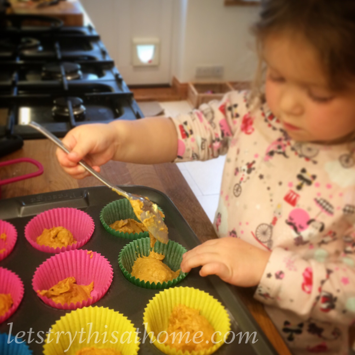 But it feels like we’ve turned a bit of a corner after the half-term break. We’re finally settling into the new routines, and finding time for more activities together. Autumn is giving way to winter, but before all the christmassy stuff starts, we decided to have a go at an autumnal bake. And with halloween just gone, I decided that meant pumpkin! In truth, the pumpkin decision was mainly because I had added tinned pumpkin puree to my online grocery order on a whim a few weeks ago, and it was sitting in the cupboard begging to be put to good use.