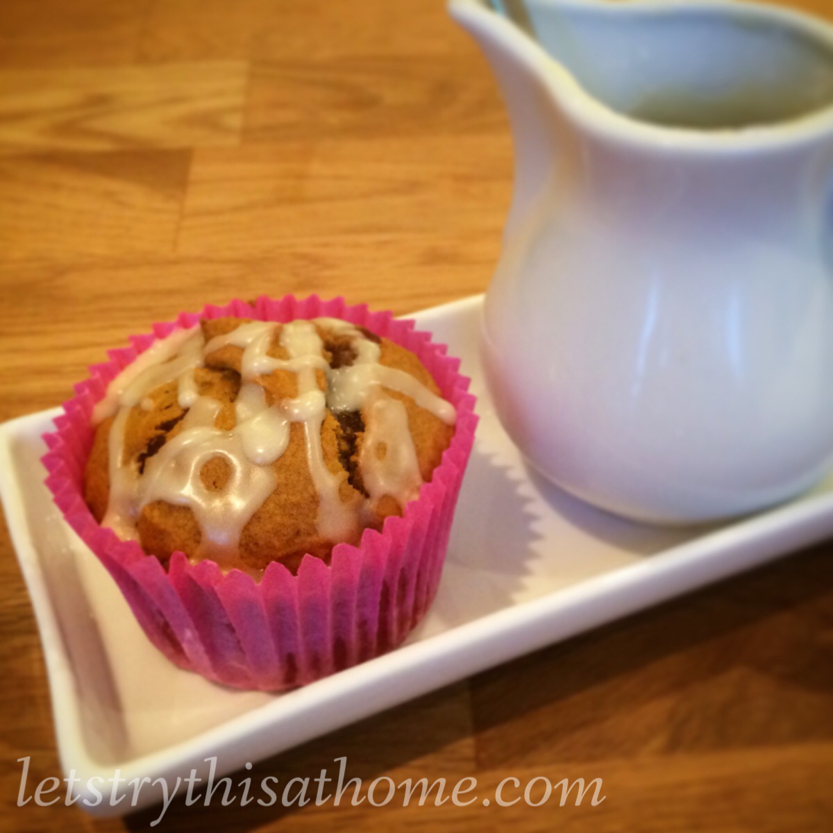While you’re waiting for them to cool, make the glaze by combining the icing sugar, orange juice and maple syrup. You might find you need a bit more or a bit less icing sugar. When the muffins are completely cool, drizzle over the glaze.