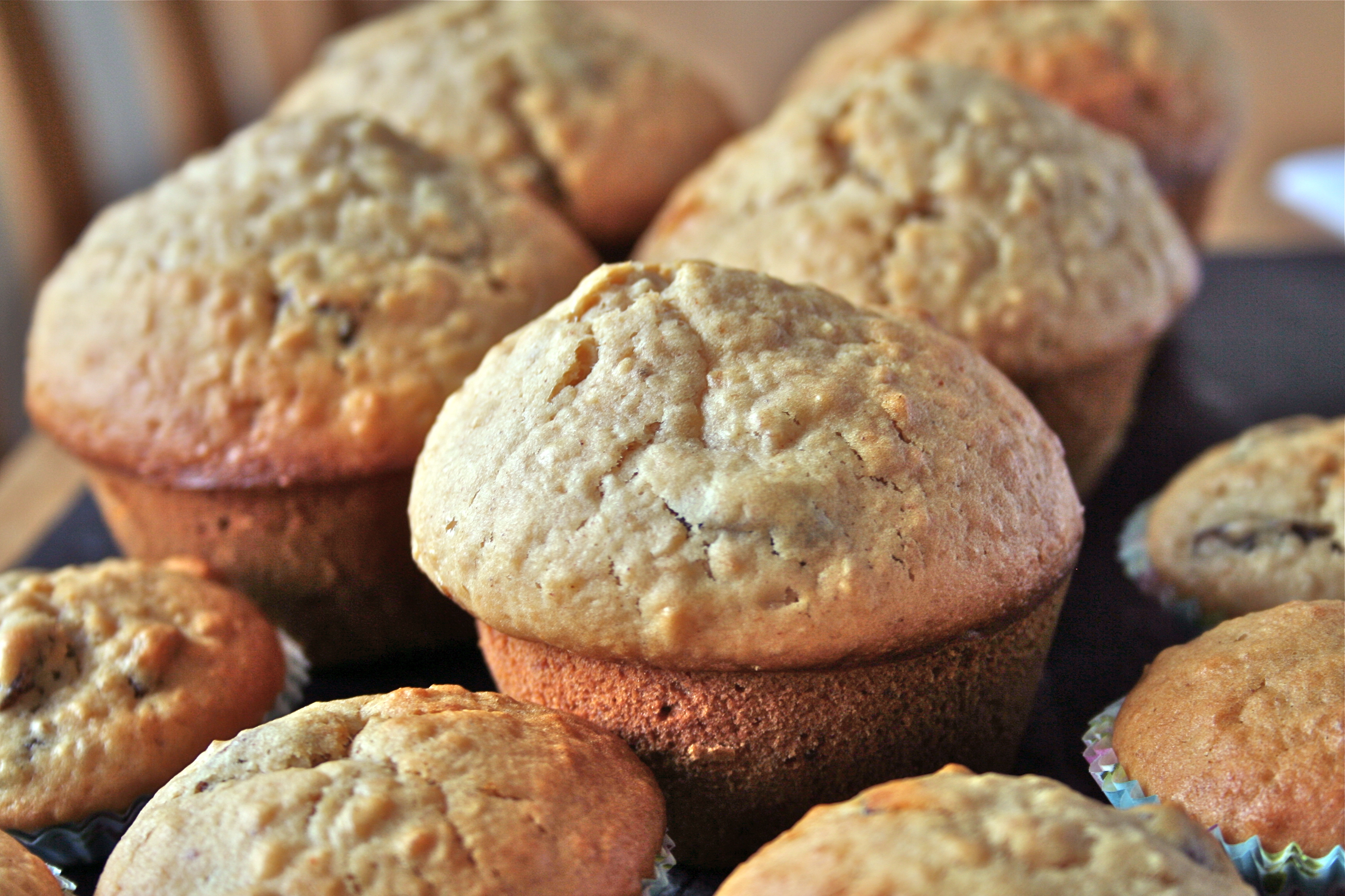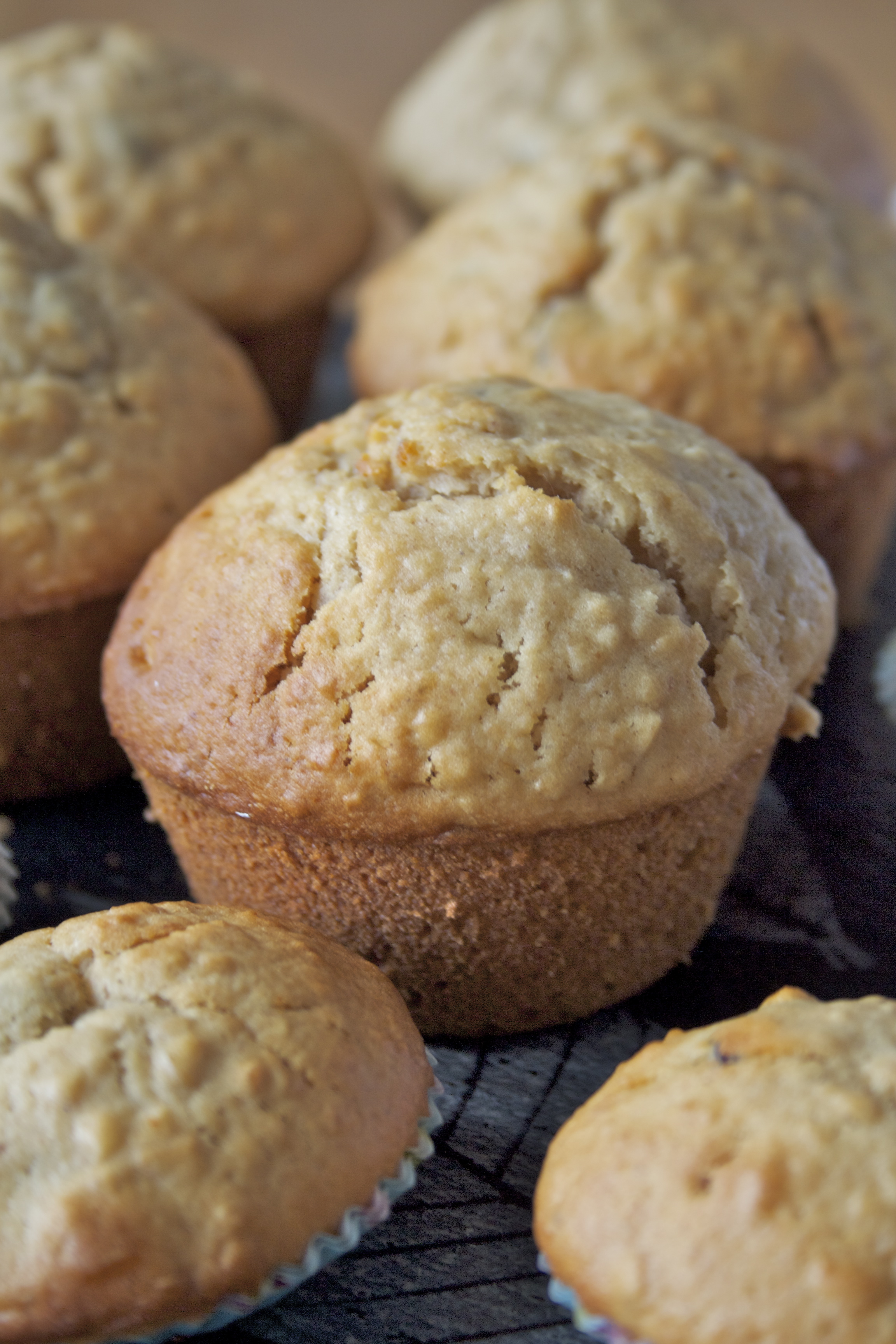We have been looking for a muffin recipe that feels a bit more healthy. I know muffins aren’t supposed to be a health-food, but these ones, with the addition of oats, and using vegetable oil instead of butter seemed a bit less ‘naughty’ than others.